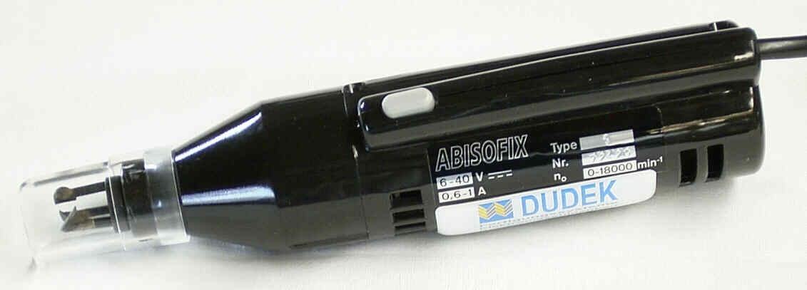 Beim Ausschalten wird das Abisofix- Gerät automatisch abgebremst. Es ist sofort für die nächste Arbeit bereit. Je nach Material können Sie am Netzgerät die optimale Arbeitsgeschwindigkeit einstellen.