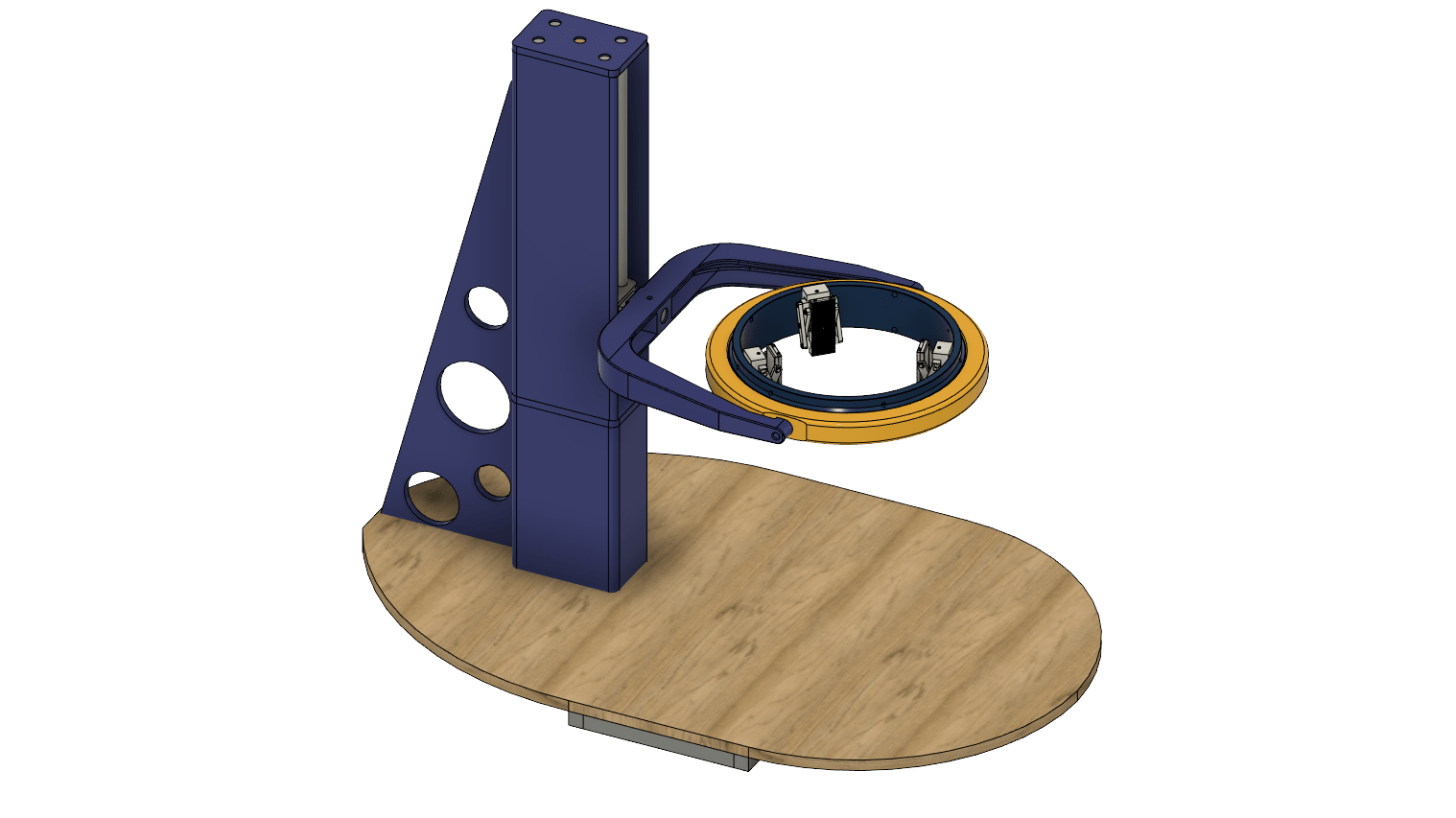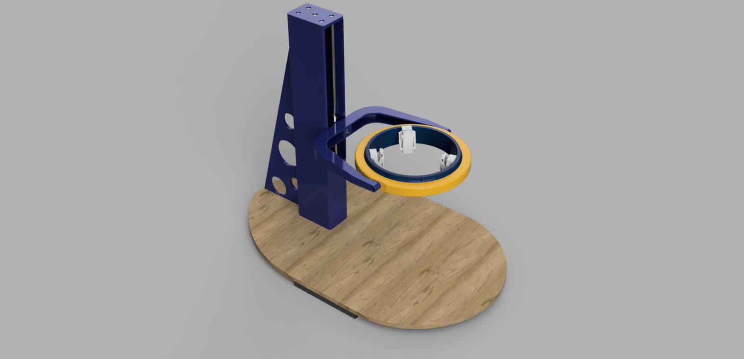 Der Einspannring „B“ lässt sich sowohl in jede schräge und waagrechte Lage drehen. Dieser Vorteil ist besonders dort erwünscht, wo an einem Arbeitsplatz eingeträufelt, geschaltet und fertig bandagiert wird. Der Ring ist 3-dimensional frei drehbar und von allen Seiten zugänglich, dadurch ergeben sich beste Arbeitsverhältnisse. Der Ringplatz ist mit Beleuchtung und einer elektrischen Höhenverstellung über ein Handbediengerät ausgerüstet.