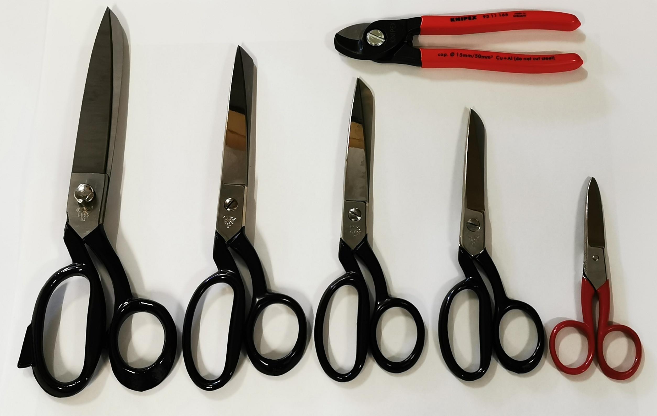 | Ausführung | Handschere Wellenschliff 125 mm, Handschere gebogen 155 mm, Handschere gerade 155 mm, Handschere gebogen 180 mm, Handschere gerade 180 mm, Handschere gerade 205 mm, Handschere gerade 230 mm, Handschere gerade 260 mm, Hand – Kabelschere gerade 165 mm |